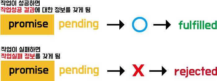 promise 객체는 다음과 같이 상태에 따라 세 경우로 나눌 수 있음.
